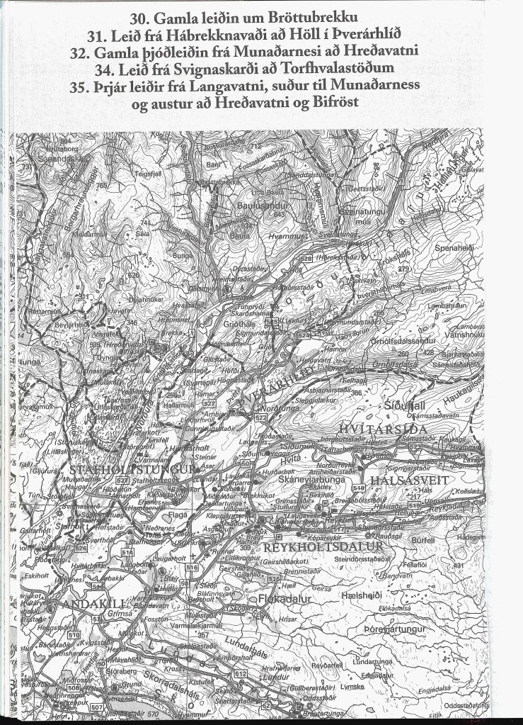 Í fyrsta lagi til hægri, þar sem leið liggur hjá Lindarhvoli og Arnbjargarlæk og fram Þverárhlíð. Í öðru lagi er frá Lindarhvoli auðfarin leið að Hjarðarholti. Í þriðja lagi er hægt að fara frá Höll til vinstri, fram hjá Veiðilæk og Svartagili. Áður en komið er að Glitstöðum liggur leiðin yfir brú á Norðurá fyrir þá, sem ætla vestur með Múlum eða hvert sem fara vill í vesturátt. Unnt er að fara áfram norðan Glitstaða til hægri á leið um Karlsdal að Höfða í Þverárhlíð.