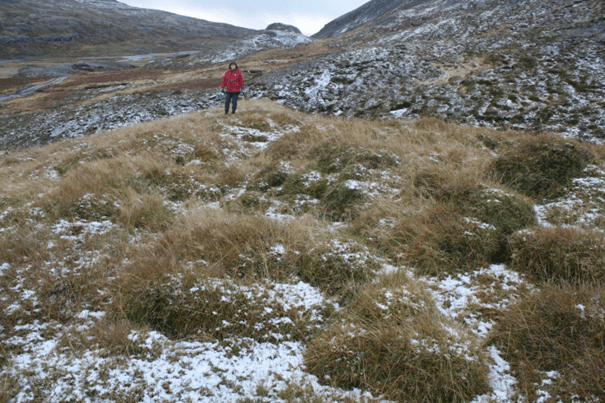 Þegar við vorum komin niður úr mestu höllunum niður undir Gljúfurá er farið fram hjá Grísatungu, sem fór í eyði 1937.[14] Þegar komið er yfir Gljúfurá er á vinstri hönd lengra Þinghólsrétt en nær Þinghóll. Ég sleppi hugleiðingum mínum um þingstaðinn, sem er friðlýst svæði. Það er efni í annan þátt. Brátt er Tandrasel, sem fór í eyði 1944, á hægri hönd. Þar bjó Jón hreppstjóri Sigurðsson (1842-1860), annar þjóðfundarmanna Mýramanna 1851 og þingmaður þeirra 1853-1861.[15]