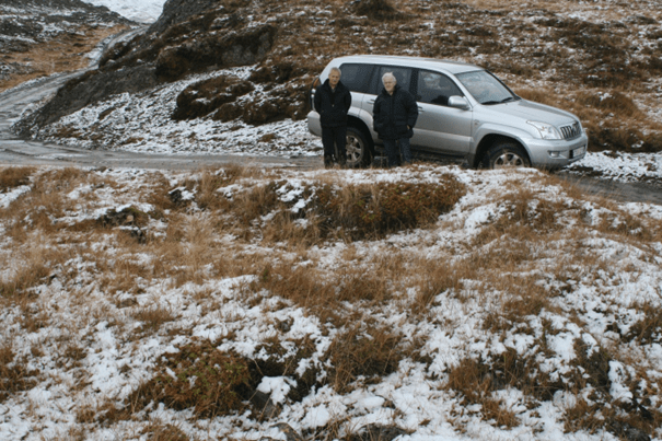 Nú ætla ég að segja ferðasöguna alla þegar málverk Ásgeirs Bjarnþórssonar var flutt þangað að lokinni afar vel heppnaðri viðgerð Ólafs Inga Jónssonar. Það var í ágúst 2011, sem lagt var af stað frá Beigalda. Farið var á tveimur jeppum. Í öðrum voru Árni Guðmundsson yngri og foreldrar hans Ragna Sverrisdóttir og Guðmundur Árnason Beigalda en í hinum Jón Bjarnason og kona hans Lilja Árnadóttir, hjónin Gróa Finnsdóttir og Ólafur Ingi Jónsson, sem var höfðingi ferðarinnar og Árni Guðmundsson eldri frá Beigalda. Leiðin lá um Grímsstaðaveg upp með Urriðaá í Álftaneshreppi að vestan, fram hjá Valshamri vestan hennar og Háhóli að austan. Báðir bæirnir á hægri hönd. Nokkrum spöl ofar fram hjá eyðibýlinu Árbæ á hægri hönd, austan ár. Alltaf er fallegt að ferðast upp Grímsstaðaásana, Árása, Breiðás og Langás meðan vegur lá um þá. Nú liggur vegurinn vestan við tvo þeirra síðarnefndu.