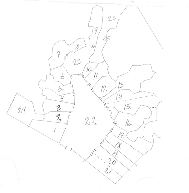 Númerið tuttugu og fimm eru þar sem ævaforn réttarbrot gæti hafa verið dilkur og eru nú varla sýnileg, enda nemur loftmyndavél þau ekki. Í dag undrast ég að mér hafi ekki þótt ástæða til að nefna þessi veggjabrot í samantekt minni frá 2003.